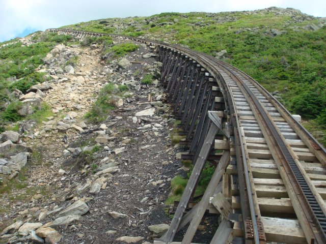 Mt. Washington Cog Railway --- http://en.wikipedia.org/wiki/Mount_Washington_Cog_Railway