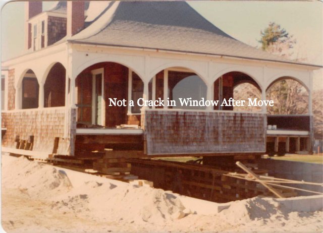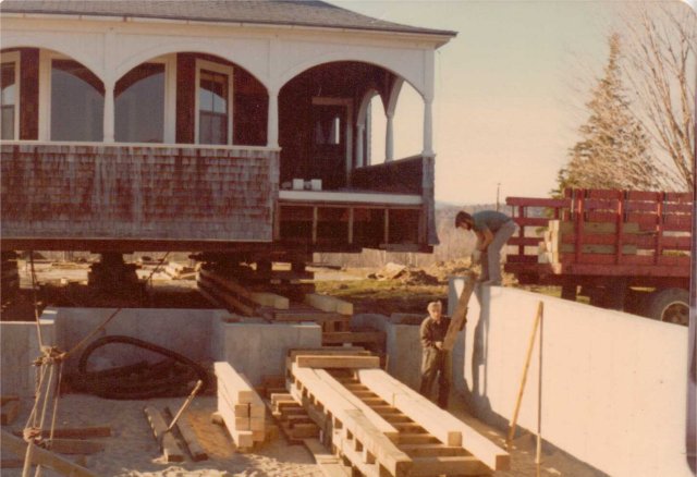 A forward-moving trestle of cribs was rebuilt daily and the cottage was literally rolled on perfectly round logs