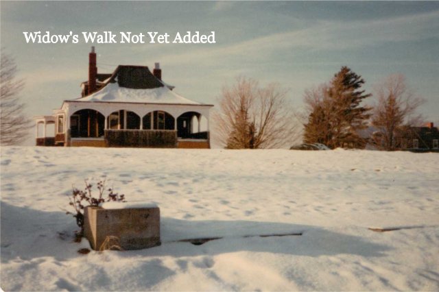 The cedar siding was stained gray and the widow's walk was installed