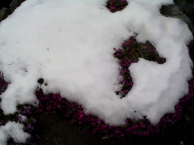 These are the above phlox blossoms covered with snow on Memorial Day