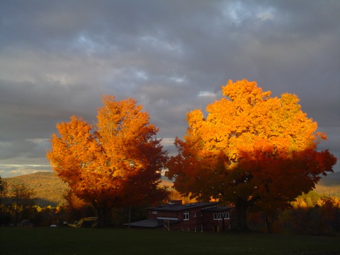 This is the sun setting on two old maple trees as seen from my desk