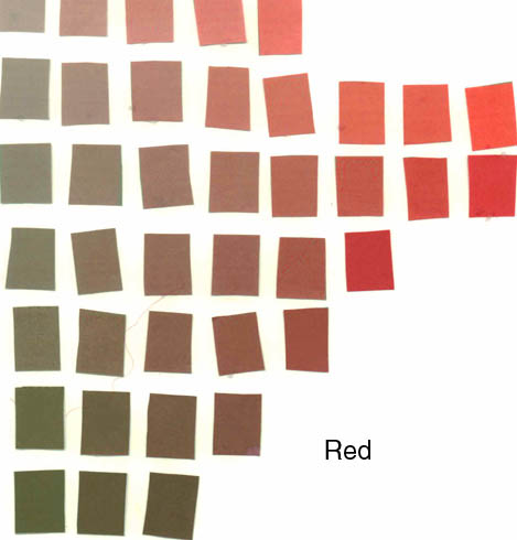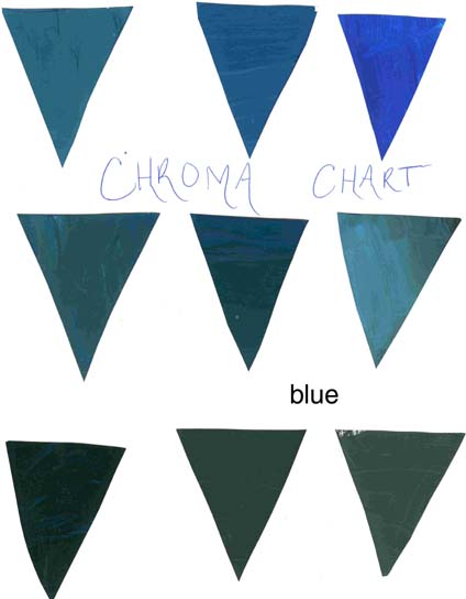 | The Links below are chroma charts prepared by students in Scene Painting at Trinity University. Each student was assigned a hue from the Munsell Color Chart to investigate. The following demonstrate the quality of chroma in color. | ||||||||||||||||||