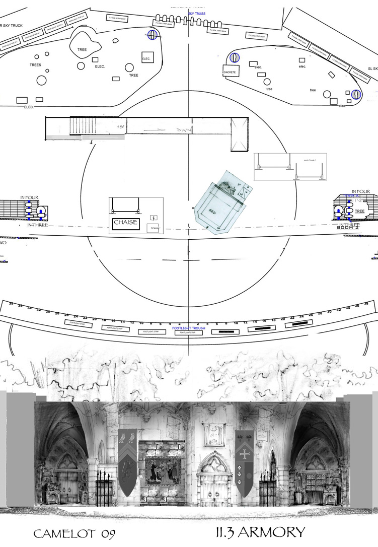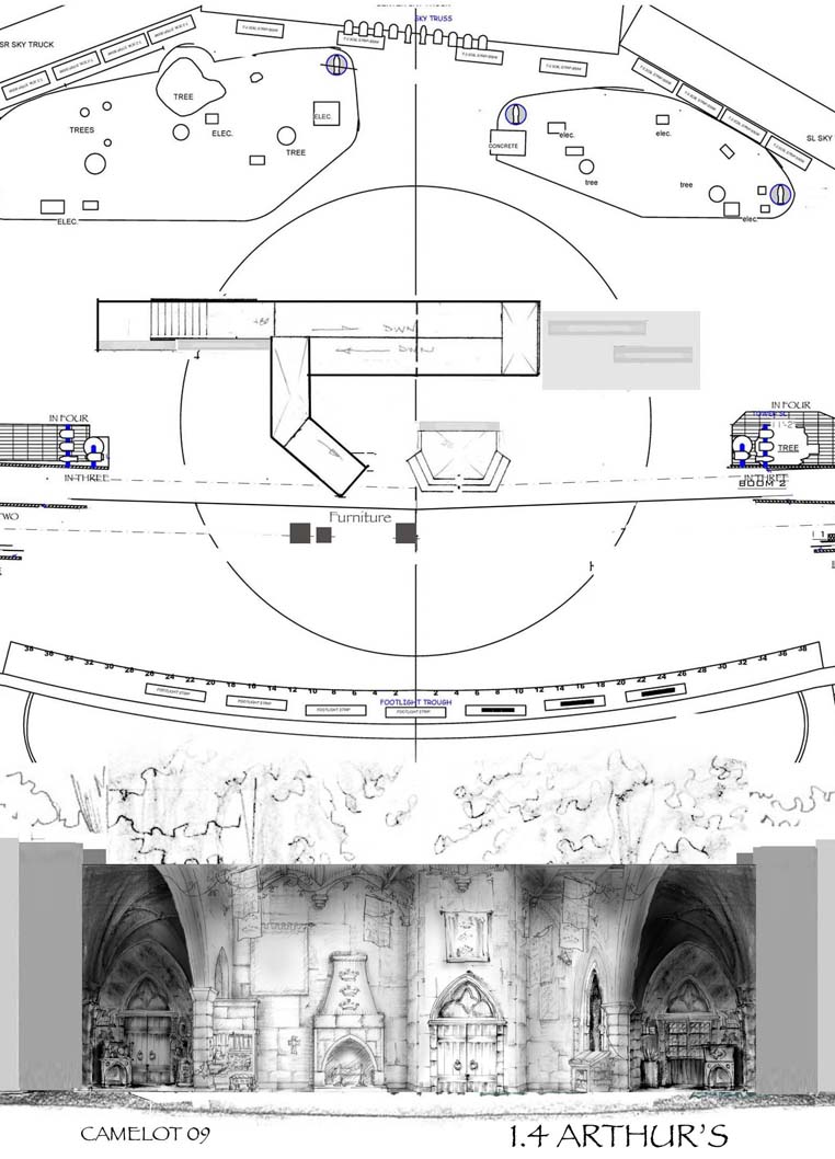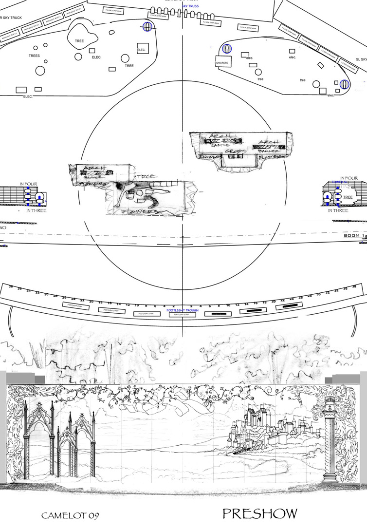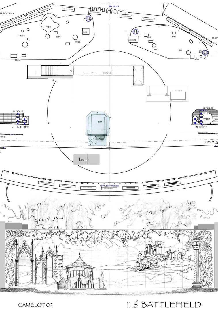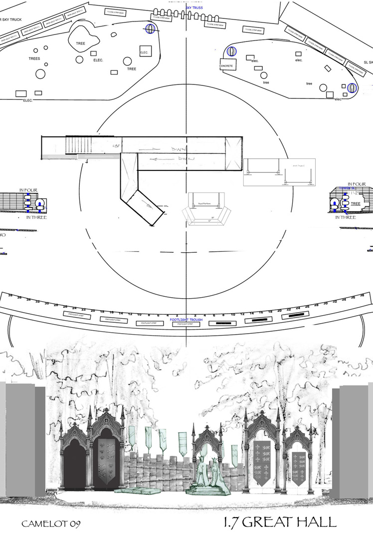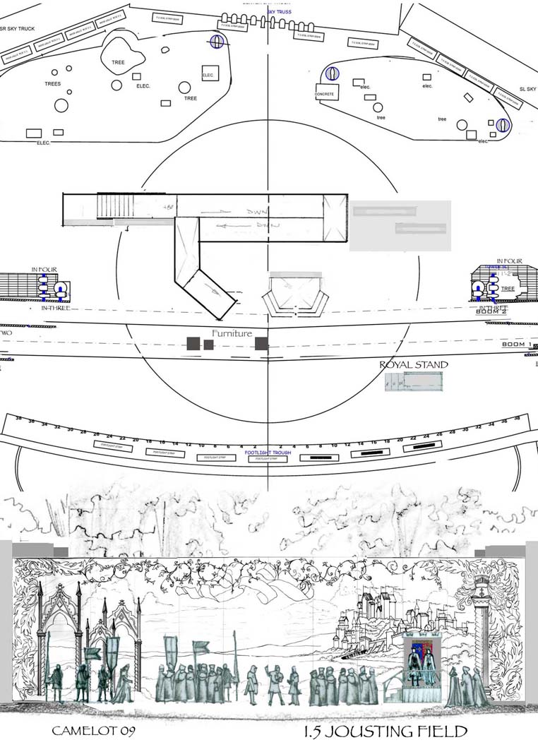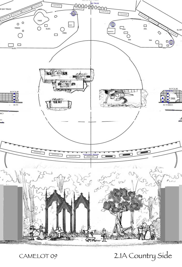 Please click the links below for sketches and drawings. The designs created for the St. Louis MUNY's production of CAMELOT are the property of SLG Design & Creative Talent and Steve Gilliam. Contact us if you are interested in these or other production designs for your theatre.