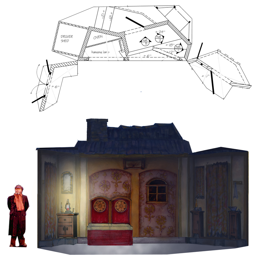 Please click the links below for sketches and drawings. The designs created for Troika Entertainment's production of FIDDLER ON THE ROOF are the property of SLG Design & Creative Talent and Steve Gilliam. Contact us if you are interested in these or other production designs for your theatre.