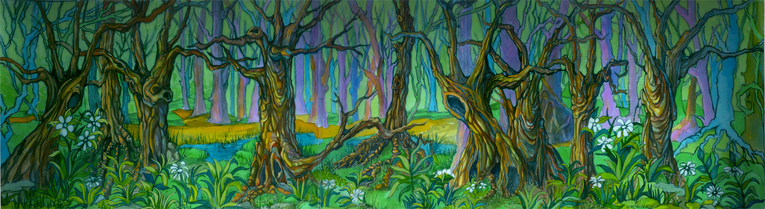 03.13.13 Rough Sketch for Boom 2: Forest-Swamp-Journey Boom with Rousseau references for style, color and scale.