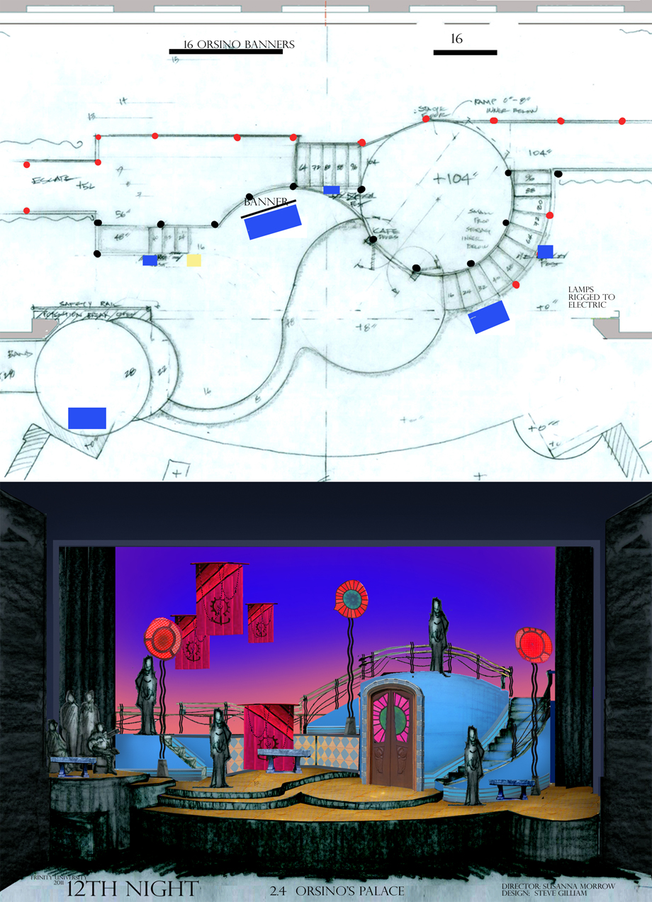 This homepage serves as the entry site for Trinity University's Stieren Theatre production of Twelfth Night. Images attached are for the use of the artistic staff as they prepare for this project. Designs are the property of the individual designers noted herein. For additional information regarding this or other designs, email sgilliam@trinity.edu or log onto http://faculty.trinity.edu/sgilliam