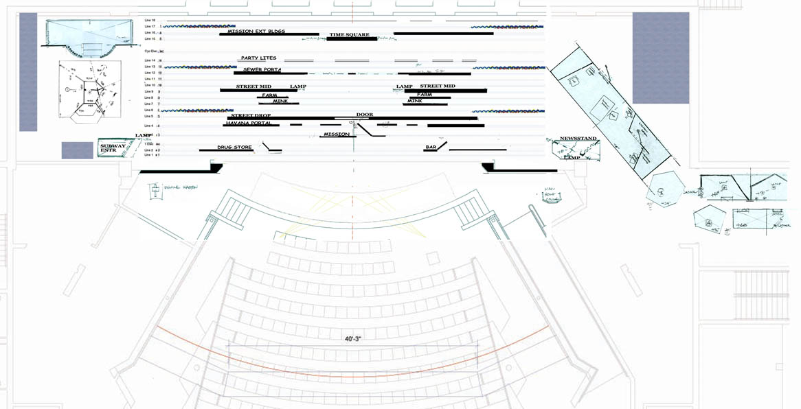 This is the index page for scene design materials related to Trinity's production of GUYS & DOLLS directed by Roberto Prestigiacomo with choreography by Stieren Guest Artist Darren Lee. The designs created for Trinity's production are the property of Steve Gilliam. Contact him if you are interested in these or other production designs for your theatre. To view drawings, click on the desired link below.