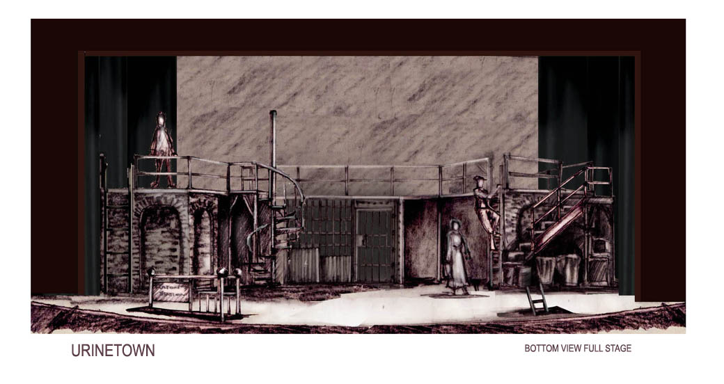 This homepage serves as the entry site for Trinity University's Stieren Theatre production of URINETOWN. Images attached are for the use of the artistic staff as they prepare for this project. Designs are the property of the individual designers noted herein. For additional information regarding this or other designs, email sgilliam@trinity.edu or log onto http://faculty.trinity.edu/sgilliam