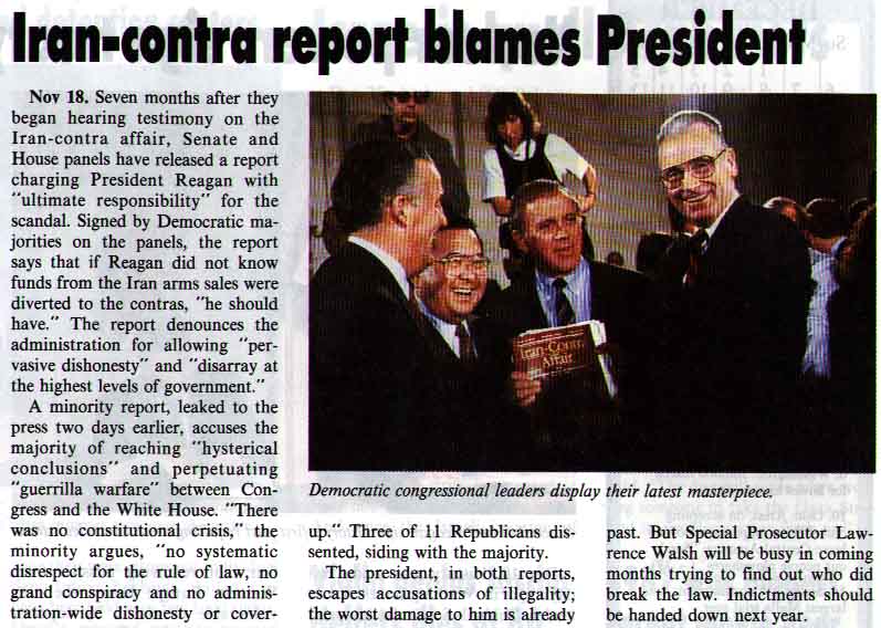 Iran-contra was a big deal, but nothing ever got really resolved. Who knew what, when, or why. A lot of heads rolled, but these folks started to stop making tapes after Nixon.