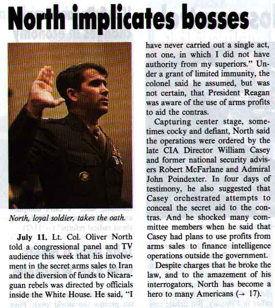 And the big scandal of the decade brought a new and familiar face to the American eye, Oliver North. Now he's a right-wing talk radio host. Look where lying to Congress will get you.