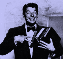A former actor, Reagan was known mostly for co-starring with a chimp, but as a candidate for president, he partnered with George Bush.