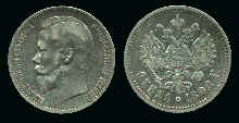 These are rubles from 1895. For more pictures of rubles from circa 1860-1917, go to Regular Issue Rubles and 3 Ruble coins.
